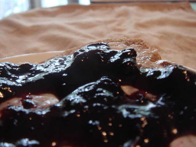 | Blueberry jam over my cinnamon raisin walnut bread |